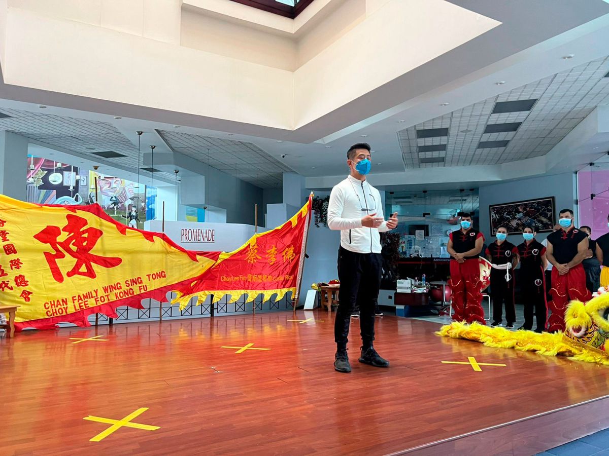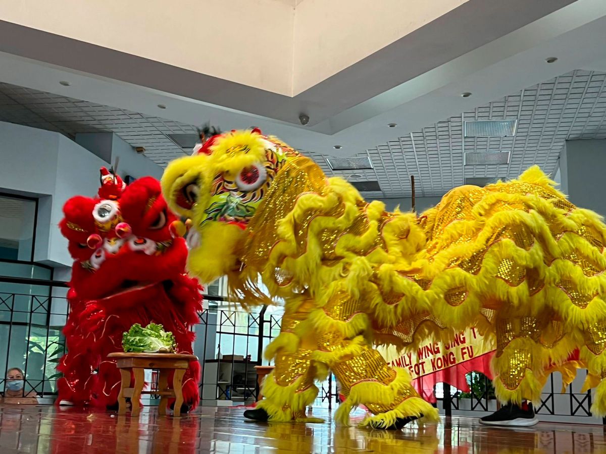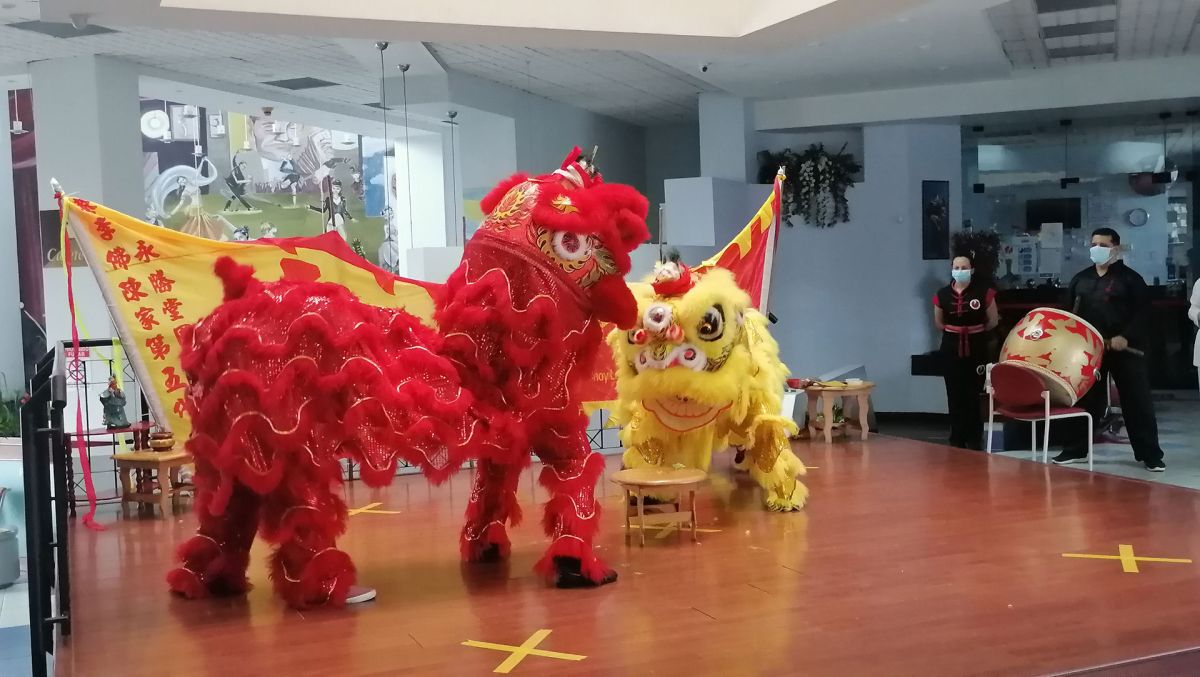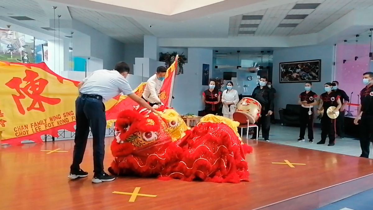 Durante la actividad se realizó la celebración Hoy Gung propia de la Danza del León; la cual consiste en la apertura de los ojos y el inició del baile de apertura de ellos. Los leones; uno rojo y otro amarillo; representan la prosperidad y la salud, respectivamente; en la ceremonia, los leones fueron iniciados por la honorable delegación de la Embajada de la República Popular China. El león es un icono simbólico muy importante para una escuela de Kung Fu por cuanto personifica el espíritu y energía de esta. En las danzas del león se demuestra con los movimientos de los pies, el esfuerzo y trabajo de las posturas que utiliza el estilo marcial en particular.