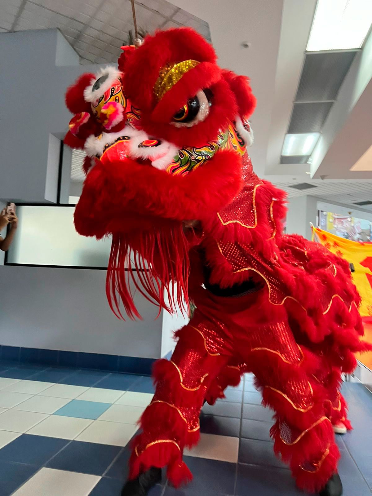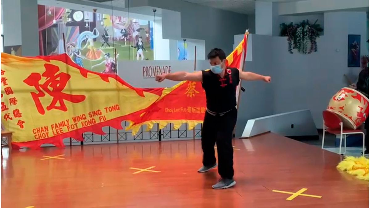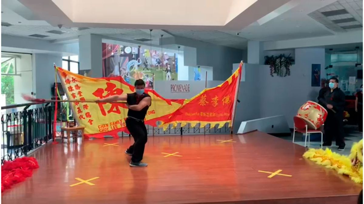 Durante la actividad se realizó la celebración Hoy Gung propia de la Danza del León; la cual consiste en la apertura de los ojos y el inició del baile de apertura de ellos. Los leones; uno rojo y otro amarillo; representan la prosperidad y la salud, respectivamente; en la ceremonia, los leones fueron iniciados por la honorable delegación de la Embajada de la República Popular China. El león es un icono simbólico muy importante para una escuela de Kung Fu por cuanto personifica el espíritu y energía de esta. En las danzas del león se demuestra con los movimientos de los pies, el esfuerzo y trabajo de las posturas que utiliza el estilo marcial en particular.